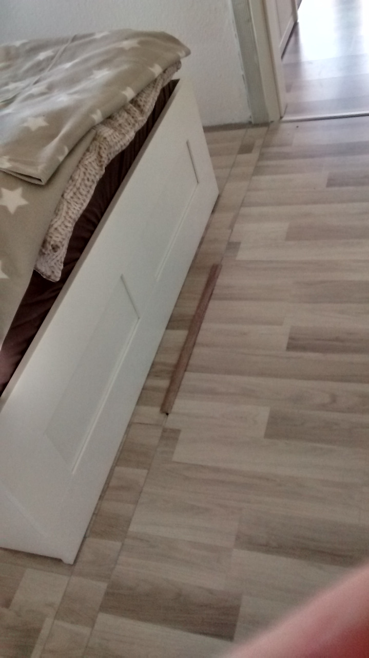 Leider hatte man erst die Leichtbauwand eingezogen und dann das Laminat verlegt. Dadurch hatten wir einen 2m langen und 10cm breiten Streifen an dem das Laminat fehlte ... upppss - darum mussten wir uns dann später mal kümmern :-)