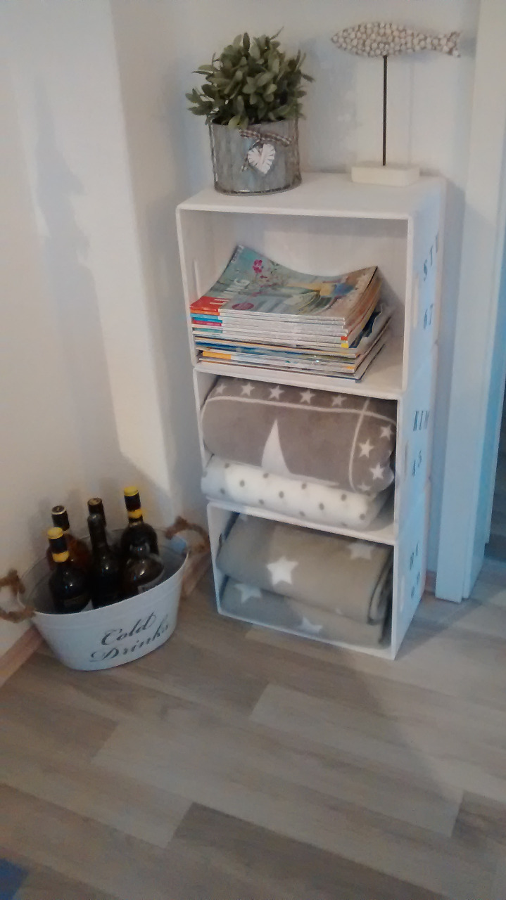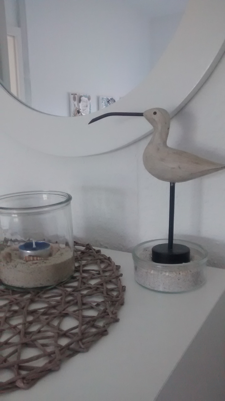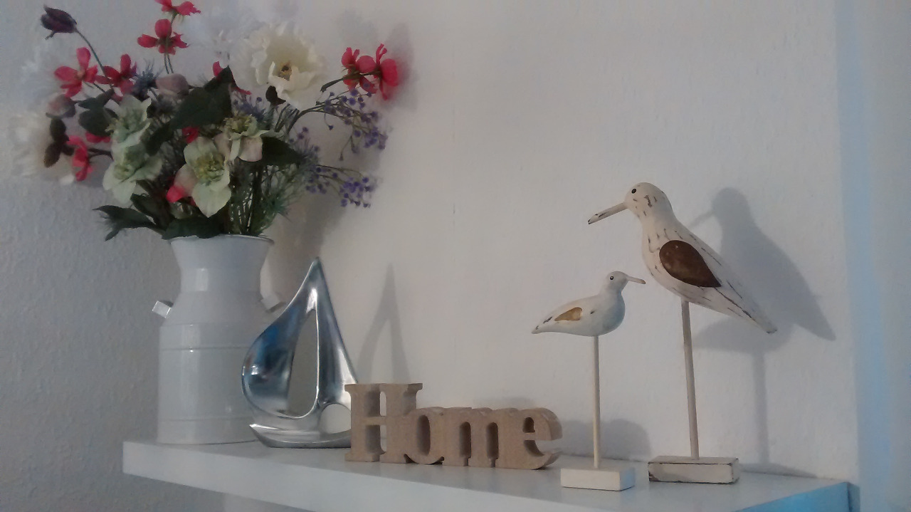 Bettwäsche, Läufer, Handtücher, Kerzen, Kuscheldecken, Sitzkissen, Schüsseln und Schalen, Windlichter, Bilder, Spiegel, maritime Deko, Topflappen, Küchenhandtücher, Kunstpflanzen, Tischsets, Türhaken, Kosmetikartikel, Stoffe, Gardinen, Dosen und Vorratsgläser uvm. Das erwies sich als schlau, denn der Kleinkram wartete schon Wochen vor der Wohnungsübergabe in Umzugskisten verpackt in Hamburg. So mussten wir zu zweit nur noch die Großteile kaufen.