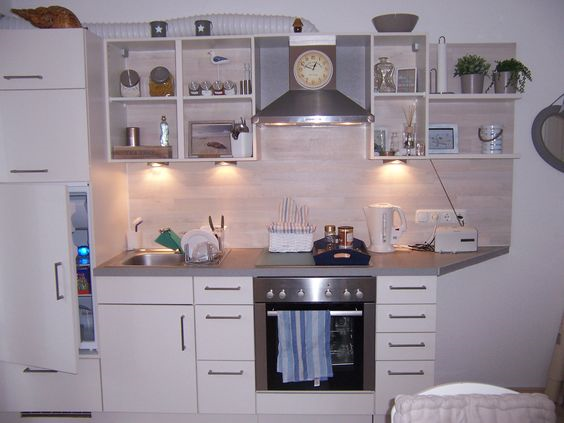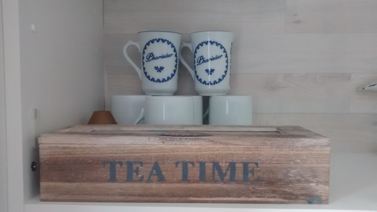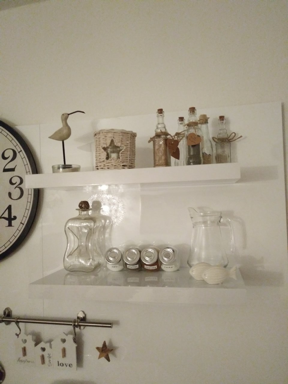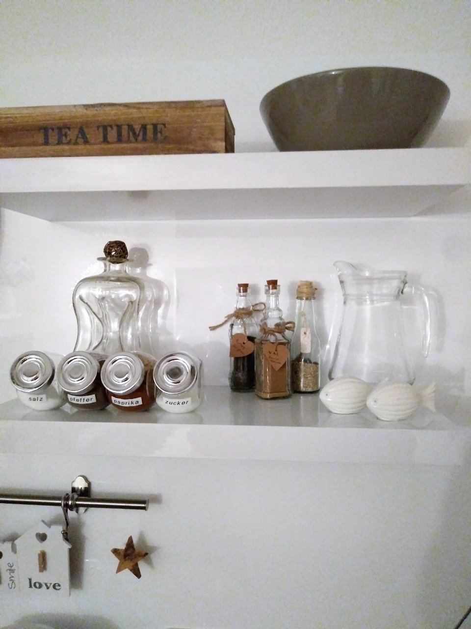 Hübsche Dekoteile zieren nun die Schrankfächer - alles "unhübsche" verschwindet in den Unterschränken.