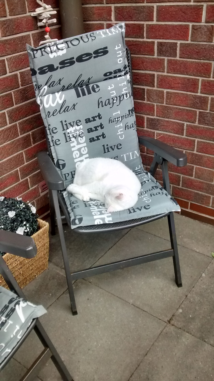 Dann kontrollierte ich die obere Wohnung. Dort sah alles gut aus (abgesehen vom vergessenen Wasser im Wasserkocher, das müffelte!), so stapelte ich nur die Balkonmöbel zusammen und nahm (auf Anweisung meines Vaters) die Solarleuchten vom Balkon ab - und gut is.