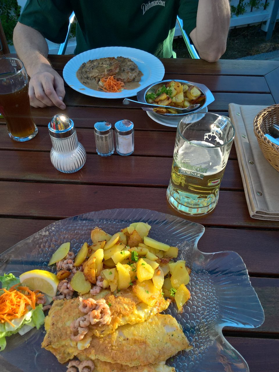 Am 07.07. reisten dann meine Eltern an, um uns abends zum Geburtstagsessen im Anker einzuladen. Es war so warm, dass wir sogar draußen sitzen konnten. Und ansonsten haben wir uns um die Küche gekümmert und meine Eltern haben sich selbst beschäftigt (Lese, Fahrradtour, kleine Bastelarbeiten in der Wohnung...) - so soll´s sein!